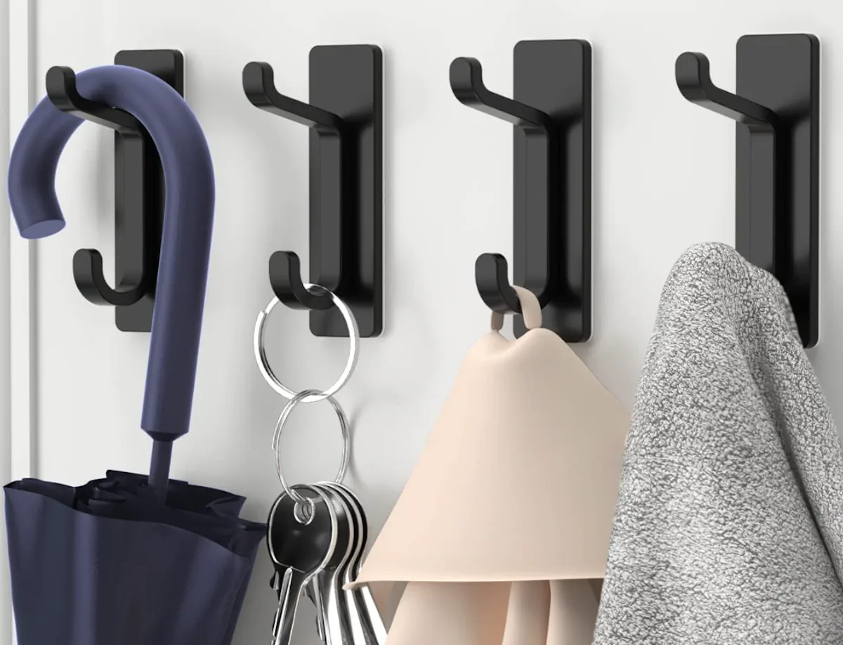 Sleek stick-on wall hooks that hold up to 13 pounds