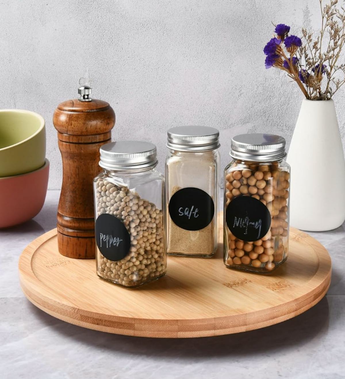 Once you set the oils, condiments, and spices you use most often on this bamboo lazy Susan, you will wonder how you existed in the times before. Spin to grab salt or olive oil. Draw the entire collection away to clean the counters. Genius! (And so affordable.) It is a strategy that works well on a desk or vanity, too.