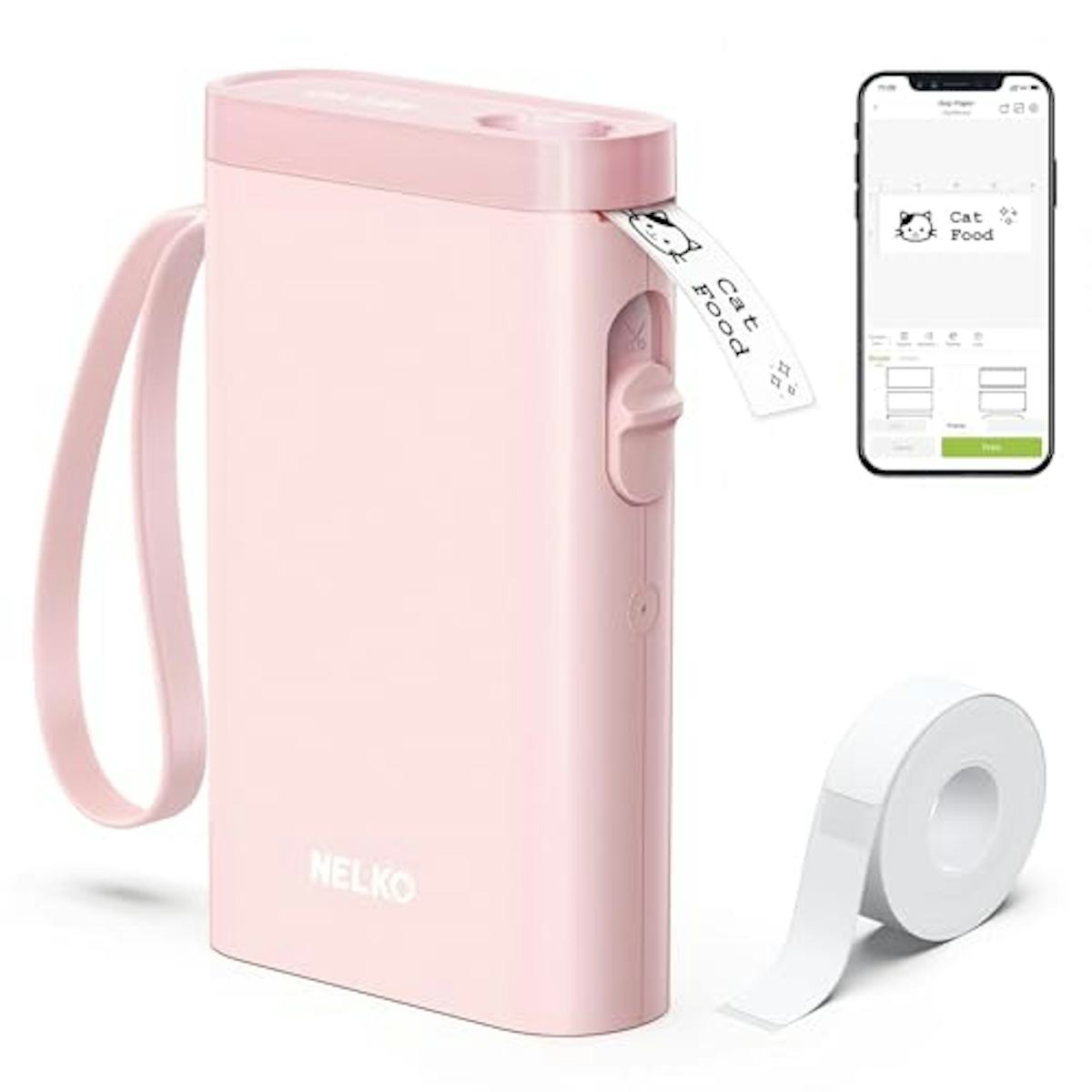 Nelko Label Maker Machine with Tape, P21 Bluetooth Label Printer, Wireless Mini Label Makers with Multiple Templates for Organizing Office Home, Pink