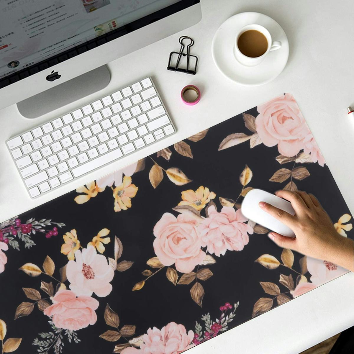 iCasso Extended Gaming Mouse Pad, Large Non-Slip Rubber Base Mousepad with Stitched Edges, Waterproof Keyboard Mouse Mat Desk Pad for Work, Game, Office, Home - Peony