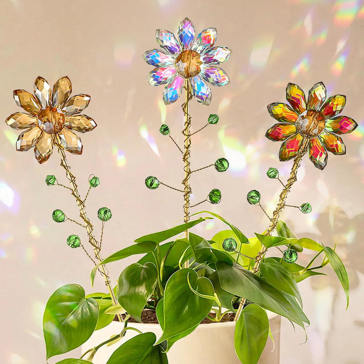 Sometimes house plants need a little extra support, and if you’re going to get plant stakes, they might as well be pretty. These 13-inch stakes are embellished with crystal flowers that double as suncatchers, so they’ll help your plants stand taller and create a cool effect on your walls when they catch the light.