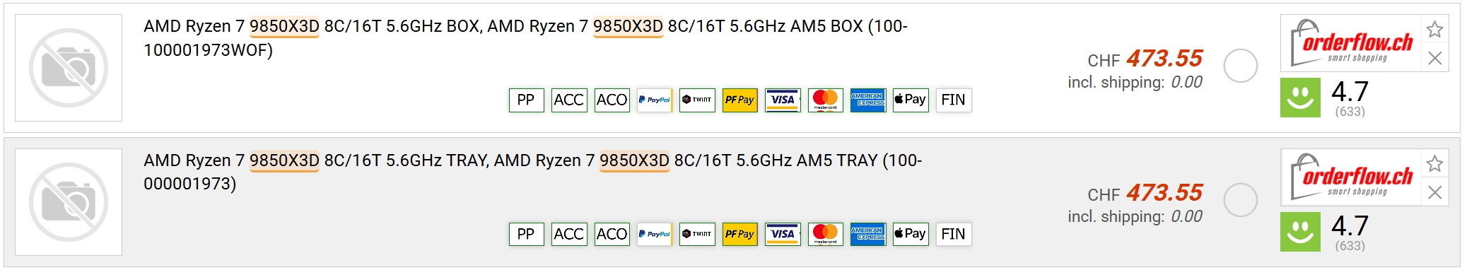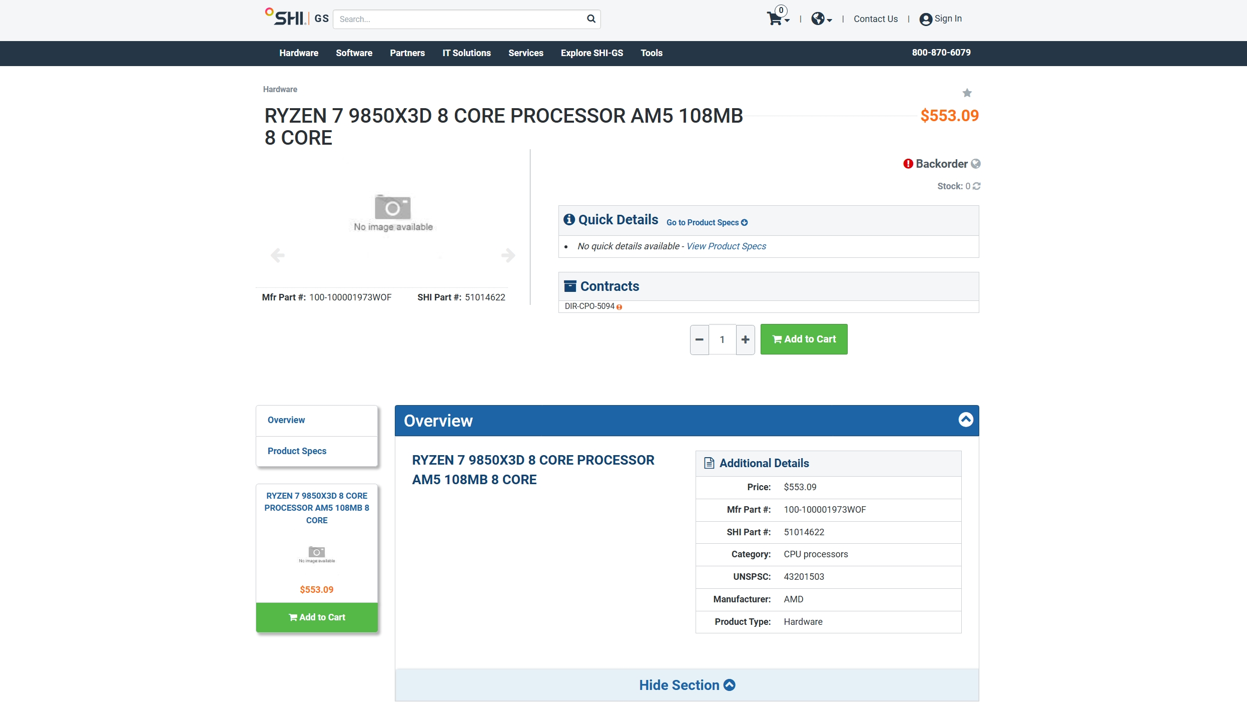 The CPU was spotted at SHI, an American retailer that listed it for $553.09, and a Swedish retailer called Ordeflow.ch, which put it up for 473.55 CFH (in a now deleted post), which comes out to around $595 USD. Those are clearly very high numbers, especially when you compare them to the $479 MSRP that the 9800X3D launched at. Searching the part numbers mentioned on SHI's listing doesn't bring up any further details either.