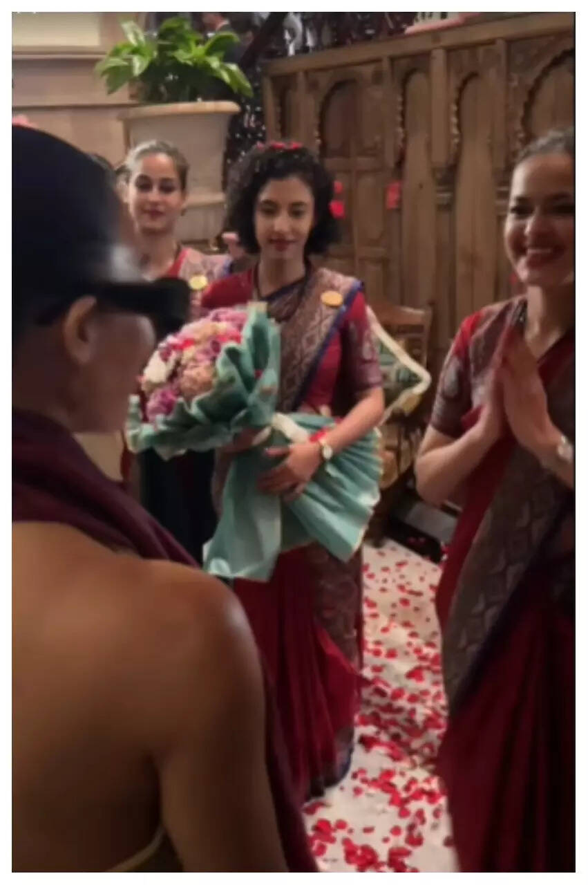 A cameraman and a woman with a boom mic were seen accompanying the star and filming the royal welcome she received at the hotel, complete with a shower of rose petals and an aarti ceremony. The clips that were posted online, gave a glimpse of her team capturing some epic moments and soon went viral online. This seemingly gave way to speculation that Anant and Radhika's grand wedding might be featured in an upcoming episode of 'Keeping Up With The Kardashians'.