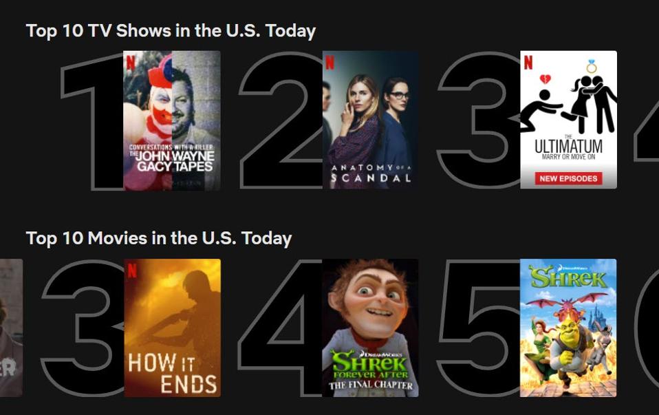 I have just noticed that Netflix is now separating out its top 10 movies and top 10 TV shows into two separate lists. I suppose that makes sense, given that you would often click on something and have no idea if you were getting a show or a movie, and that’s now how all Netflix’s other categories work. On the movie list, we have surprise, another documentary on top, this one about Abercrombie and Fitch. Elsewhere in the top 10 list we have…all three Shrek movies and for some reason, How It Ends, a 2018 apocalypse movie with Netflix branding that I swear I watched a long time ago somewhere else. I’m not sure why it would be #3 on the list right now.