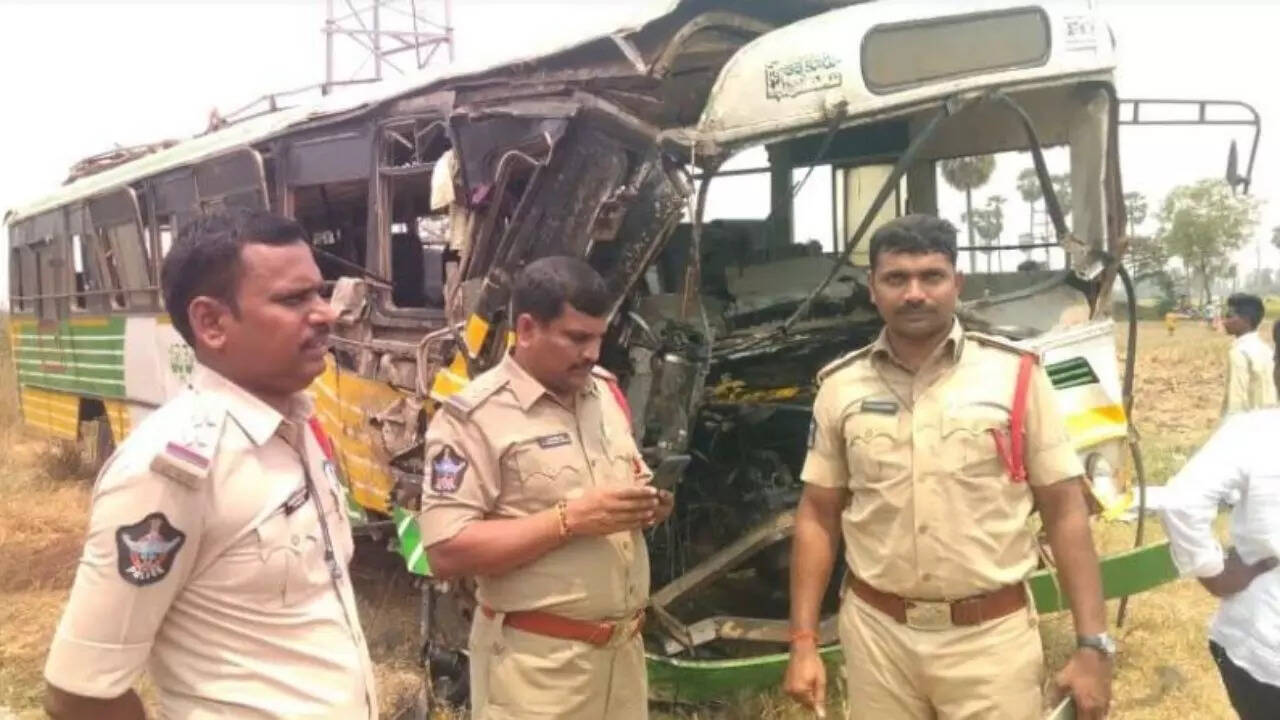 According to police, an Andhra Pradesh government bus that was carrying 40 passengers from Atmakur depot to Nellore hit a parked truck and rolled down into crops, and overturned on the Kolkata - Chennai national highway in Nellore. The accident was reported near Ramchandra Reddy Nagar in Buchireddy Mandal.