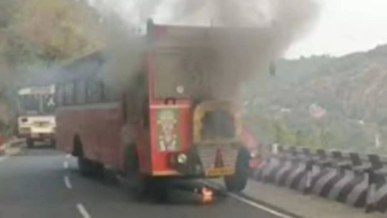 TIRUPATI: A Tirumala Tirupati Devasthanams free bus 'Dharmaradham', with Srivari Seva volunteers on board, suddenly caught fire while plying along the second ghat road leading to Tirupati from Tirumala on Saturday.