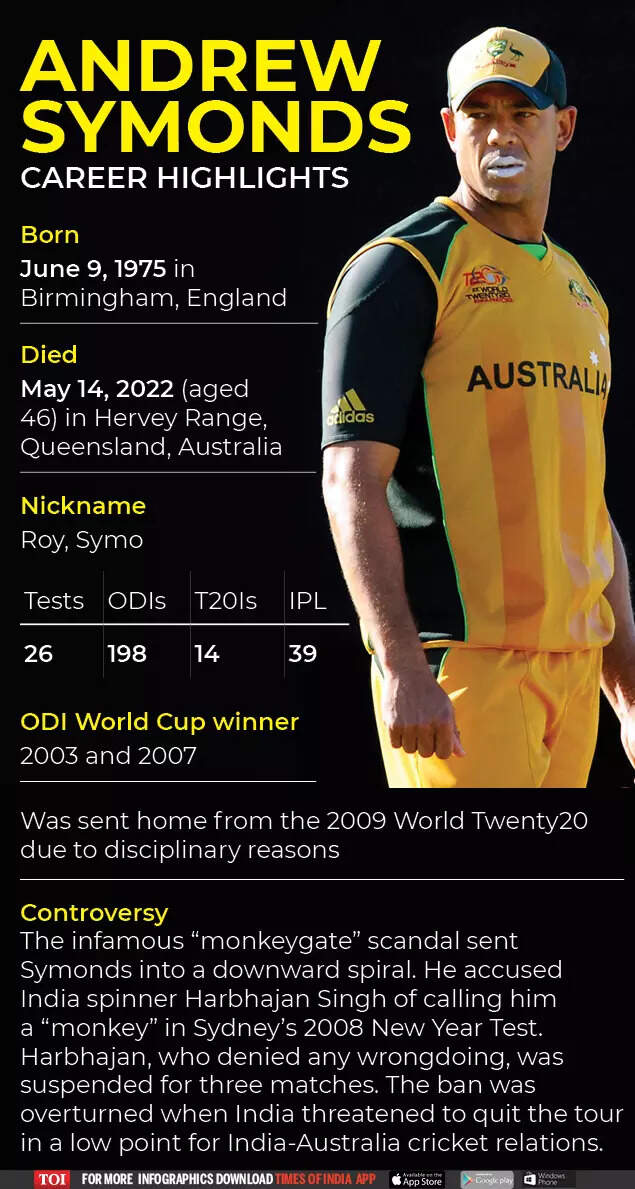 "There is also the option he gives us with the ball as he can bowl medium-pace or off-spin. As a batsman he can score at a rapid rate and has the ability to change the course of a game," Hohns had said. Symonds averaged 163 in the 2003 World Cup. In 2007, another World Cup the Aussies won unbeaten in the Caribbean, he averaged 63.