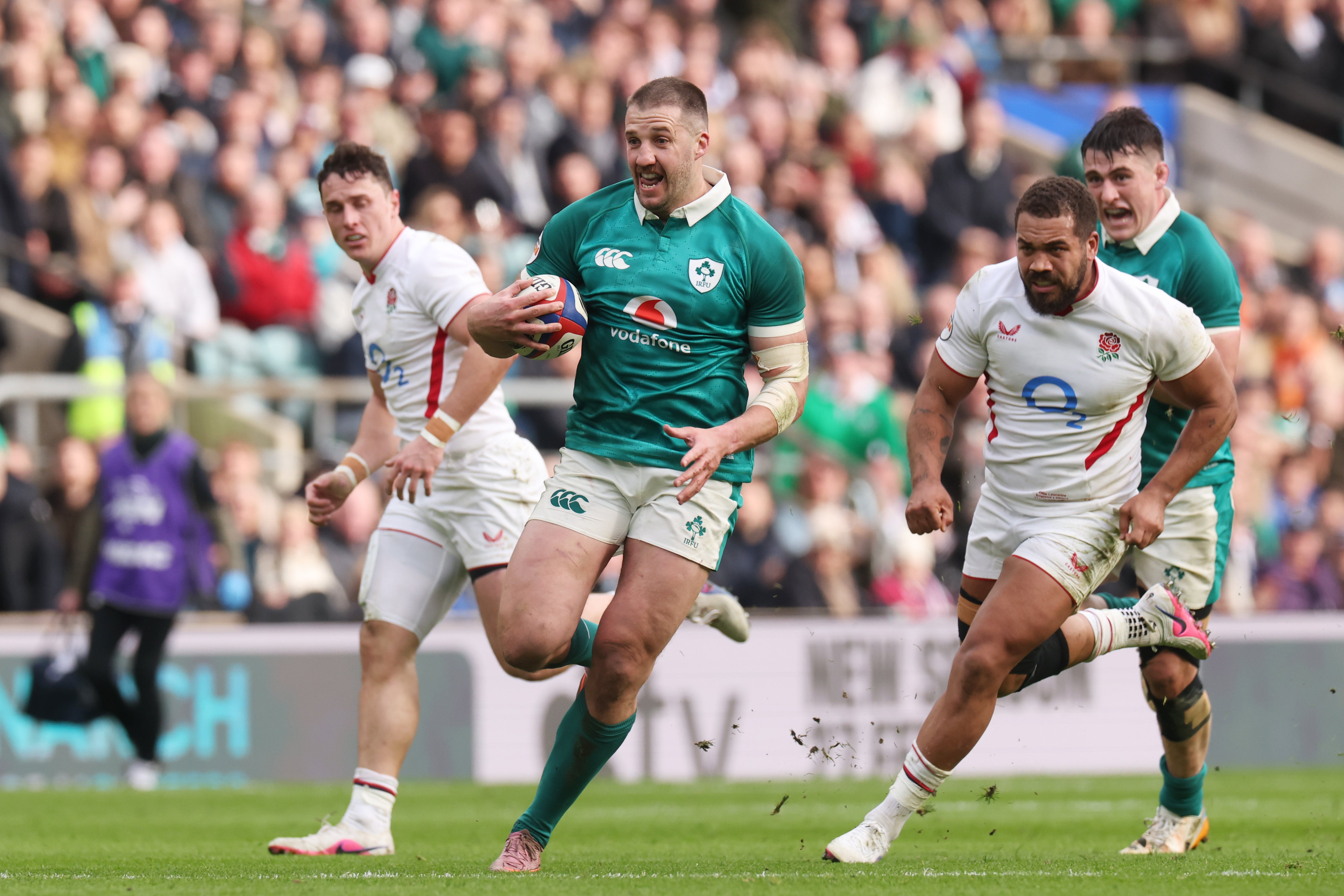 O’Brien had been introduced for James Lowe after his Leinster teammate suffered an injury that “didn’t look too good”, according to Farrell, and combined superbly with the rest of the Irish back three to tear England apart in wider channels.