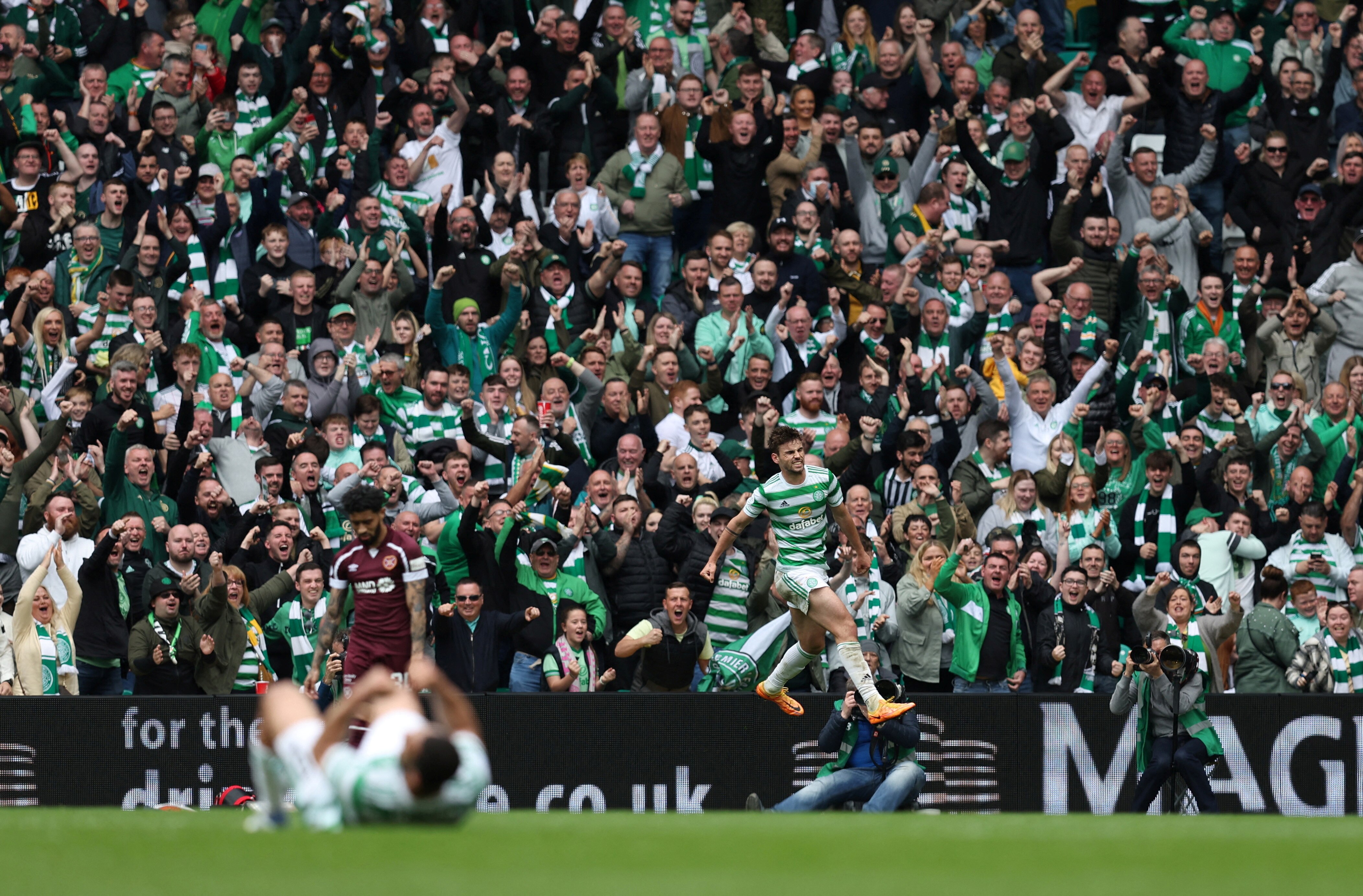 Hearts had spoiled the party atmosphere early with a third-minute goal from Ellis Sims before Maeda and Furuhashi — both identified by Postecoglou during his successful spell in Japan — hit back before the break.