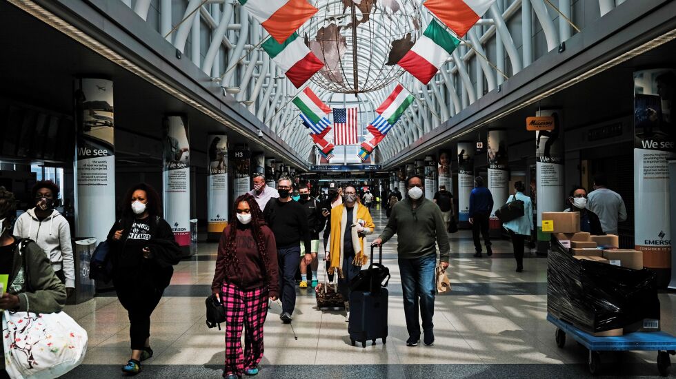 The total number of flights originating at O’Hare or connecting through the airport rose from 15.35 million in 2020 to 26.9 million last year.
