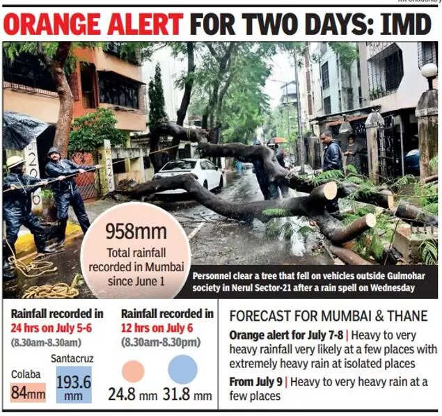 In its five-day forecast for Mumbai and Thane, the India Meteorological Department (IMD) retained its orange alert. Weathermen said heavy to very heavy rainfall is very likely at a few places with extremely heavy rain at isolated places on Thursday and Friday. From Saturday, the intensity of rain is expected to reduce with indications for heavy to very heavy rain at a few places.