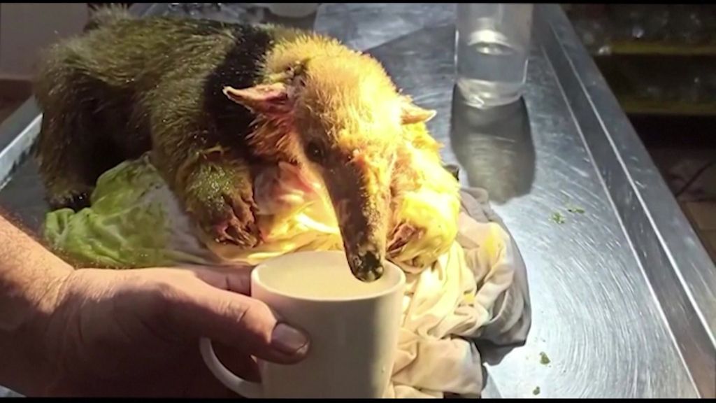 Bolivian firefighters have rescued an anteater while putting out a blaze that's been sweeping through protected areas in the country's east for days.