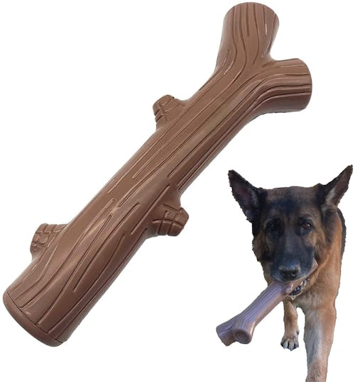 Dog trainer and behavior counselor Jennifer Malawey suggests looking for dog products that can multitask — such as this rubber toy that serves more than one purpose during playtime. Shaped like a natural piece of wood, the waterproof toy functions as both a chew stick and an object you can toss during a game of fetch. “All of these activities contribute to your dog's mental, emotional, and physical well-being,” says Malawey. “Meeting all their needs goes a long way toward minimizing anxiety.”