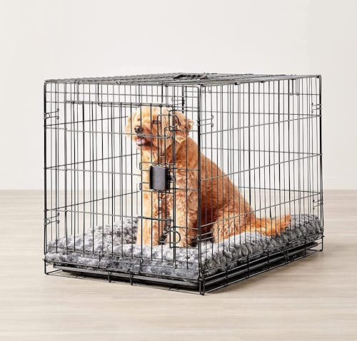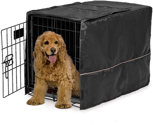 For dogs who are especially anxious when spending time alone, Reely suggests picking up a separate crate cover for added security. “A crate cover will make the crate cozier for your pup if you have a wire crate,” she says. Made of durable polyester, this cover wraps around the sides of the cage, creating a den-like atmosphere that your pup will be drawn to. It’ll also reduce the amount of distractions surrounding your dog while they rest.