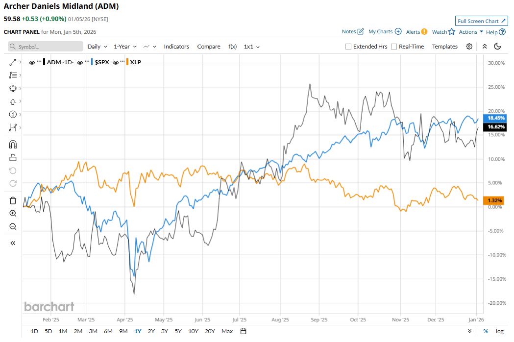 ADM has soared 19% over the past 52 weeks, outperforming the S&P 500 Index’s ($SPX) 16.2% gains and the Consumer Staples Select Sector SPDR Fund’s (XLP) marginal dip during the same time frame.