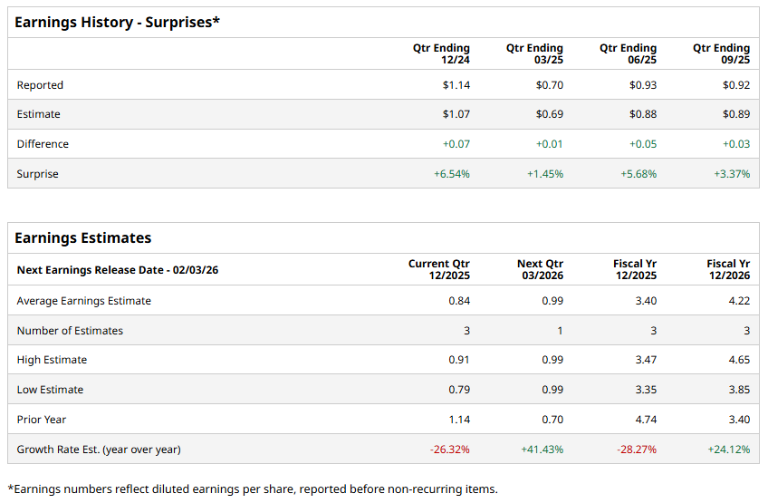For the fiscal year 2025, analysts expect the company to deliver an EPS of $3.40, down 28.3% from $4.74 reported in the previous year. However, in fiscal 2026, its earnings are expected to rebound 24.1% annually to $4.22 per share.