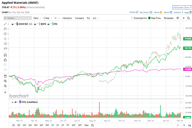 Even within the high-performing semiconductor space, AMAT has shone, outpacing the Invesco Semiconductors ETF’s (PSI) 59.8% rise over the past 52 weeks and 19.1% rally in 2026.