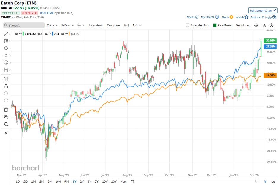 Shares of the power management company have surpassed the broader market over the past 52 weeks. ETN stock has climbed 23.4% over this time frame, while the broader S&P 500 Index ($SPX) has rallied 14.4%. Moreover, shares of the company are up 22.6% on a YTD basis, compared to SPX’s 1.4% gain.