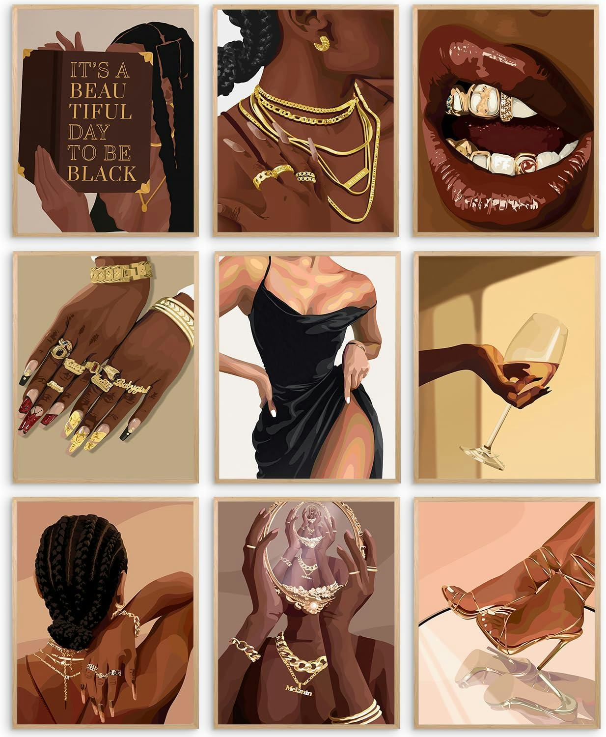 Transform your walls with this set of 9 striking posters, each featuring unique and vibrant artwork. Measuring 8x10 inches, these high-quality prints add a touch of cultural depth and visual interest to any room. Crafted on durable, fade-resistant paper, these posters are perfect for creating a dynamic gallery wall in your home or office.