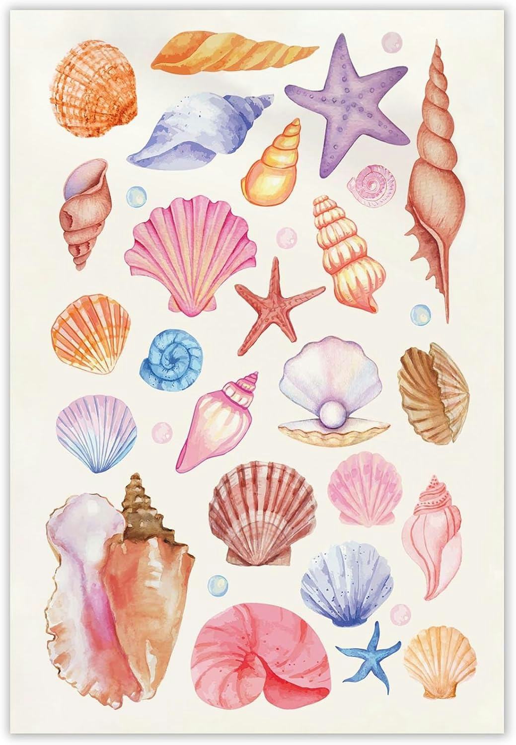 This watercolor seashell art print features vibrant ocean-inspired hues, with elegant shells in varying shapes and colors like soft pinks, deep blues, and shimmering golds. The delicate details and calming design evoke the tranquility of the beach. Ideal for bringing a touch of nature into your decor, this unframed 12x16-inch print invites a sense of relaxation and coastal charm.