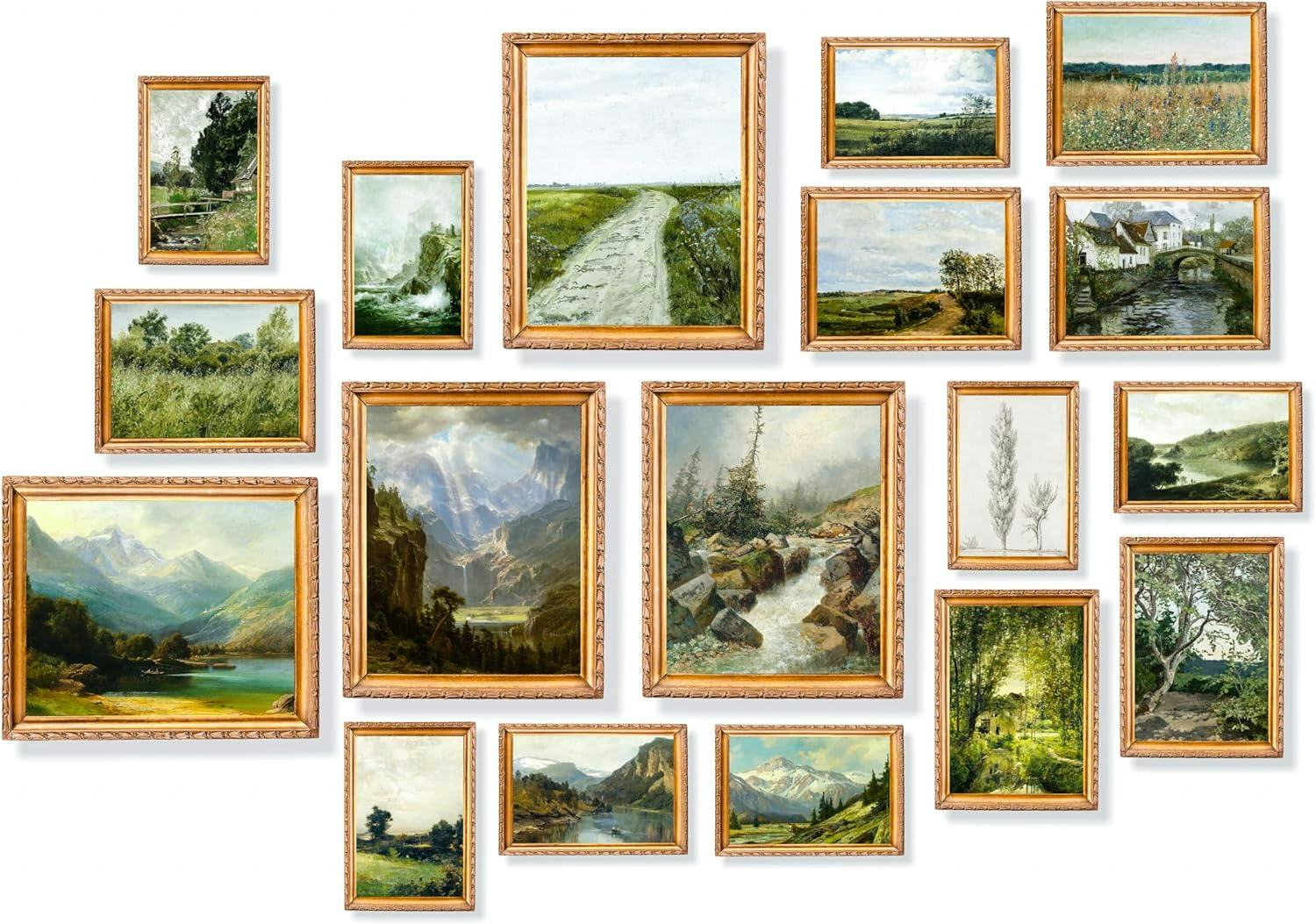This 18-piece wall art set features a mix of vintage and landscape prints, each selected to evoke the peaceful, rustic charm of the French countryside. With its blend of nature and botanical prints, it brings a serene and romantic feel to any room, whether you're decorating a bedroom or a living space.