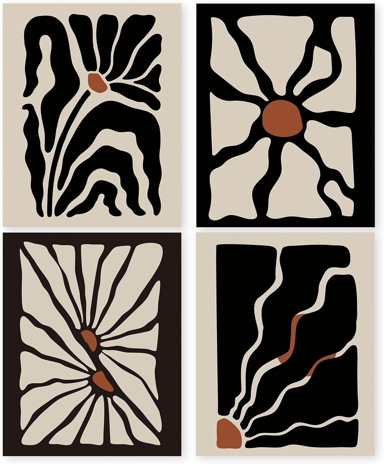 HRQKO Boho Black White Flowers Wall Art