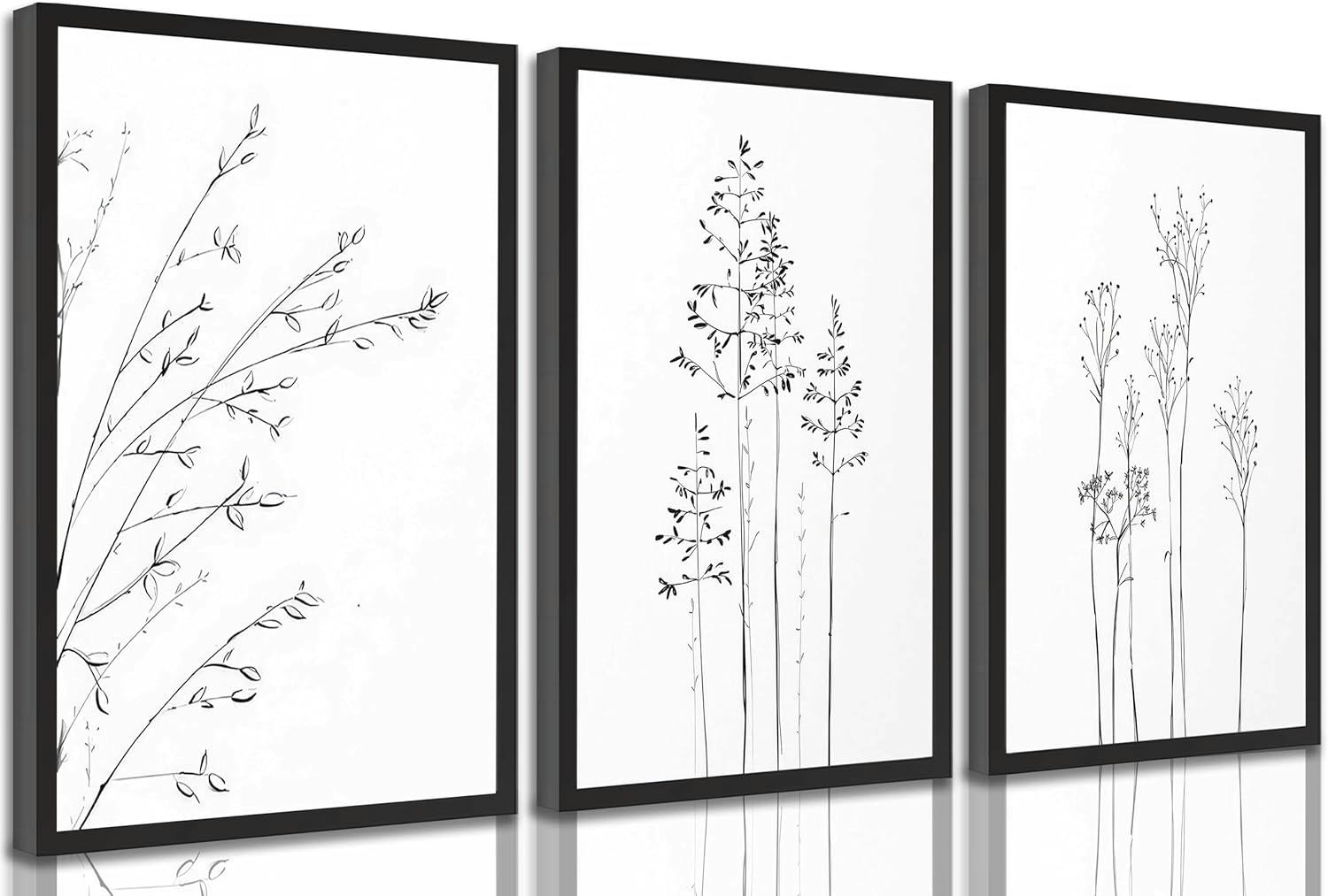 3 PCS Minimalist Black and White Botanical Canvas Wall art