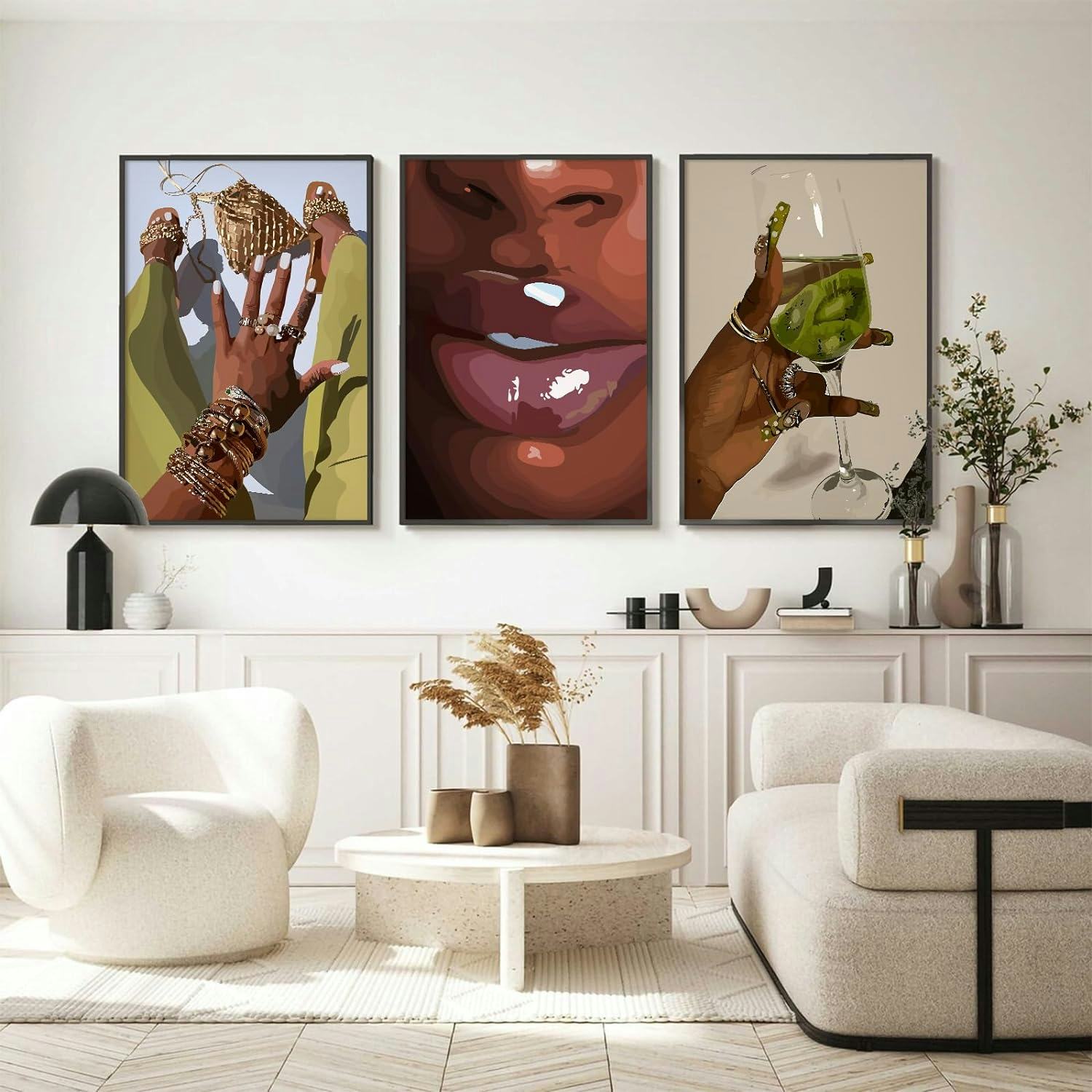 Elevate your space with this set of 3 high-quality canvas prints featuring modern boho designs. Each piece, ready to hang with included frames, blends abstract art with a warm, neutral color palette, making it a versatile choice for various home decor styles and a thoughtful gift for any occasion.