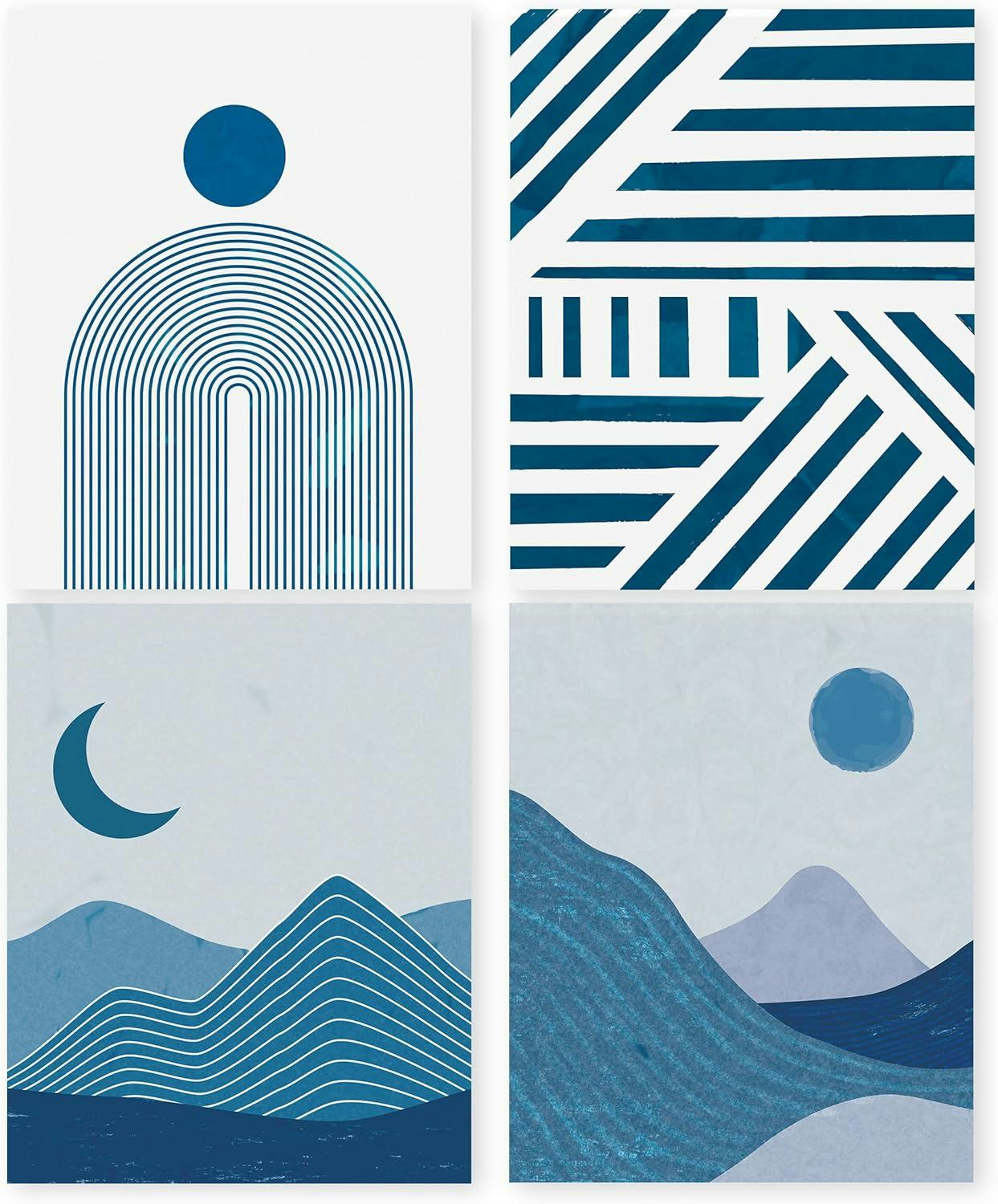 HRQKO Boho Blue Mid Century Modern Wall Art