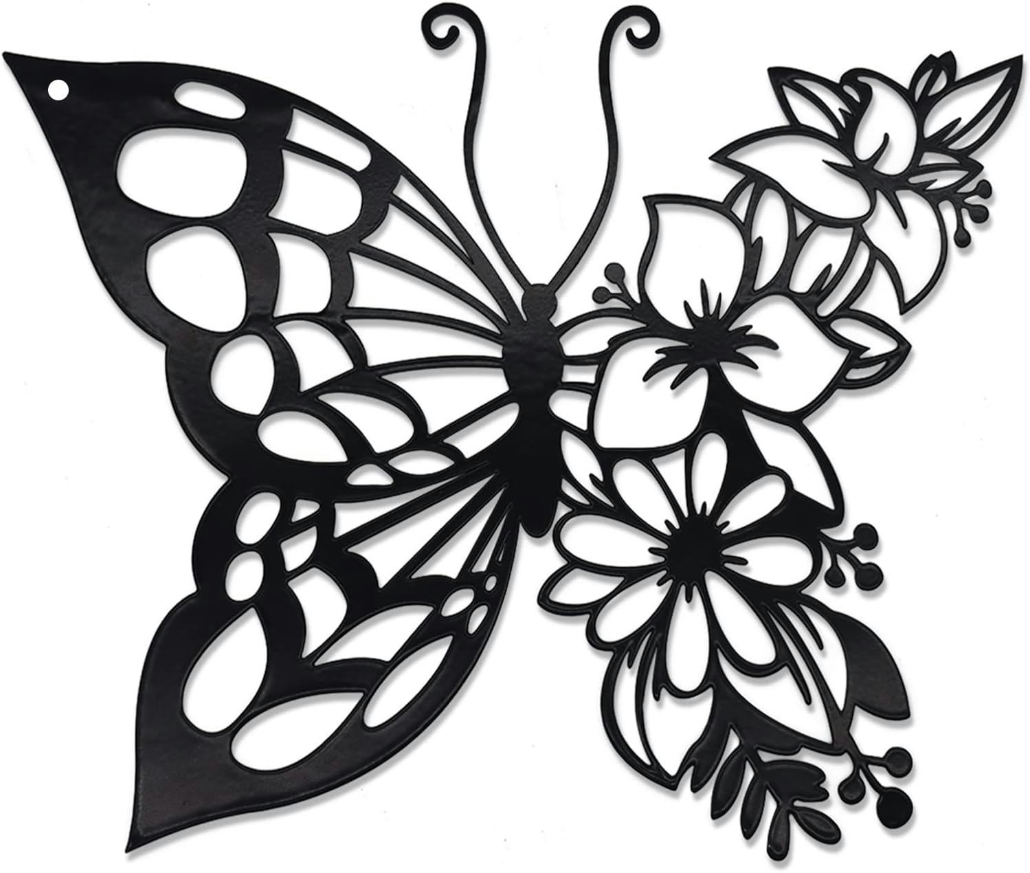 Add a touch of delicate charm to your space with this elegantly designed metal butterfly wall art. Its intricate floral and butterfly motifs bring a sophisticated natural touch, ideal for brightening up any room. Crafted from durable iron, this piece maintains its beauty and form over time, making it a timeless addition to your home decor.