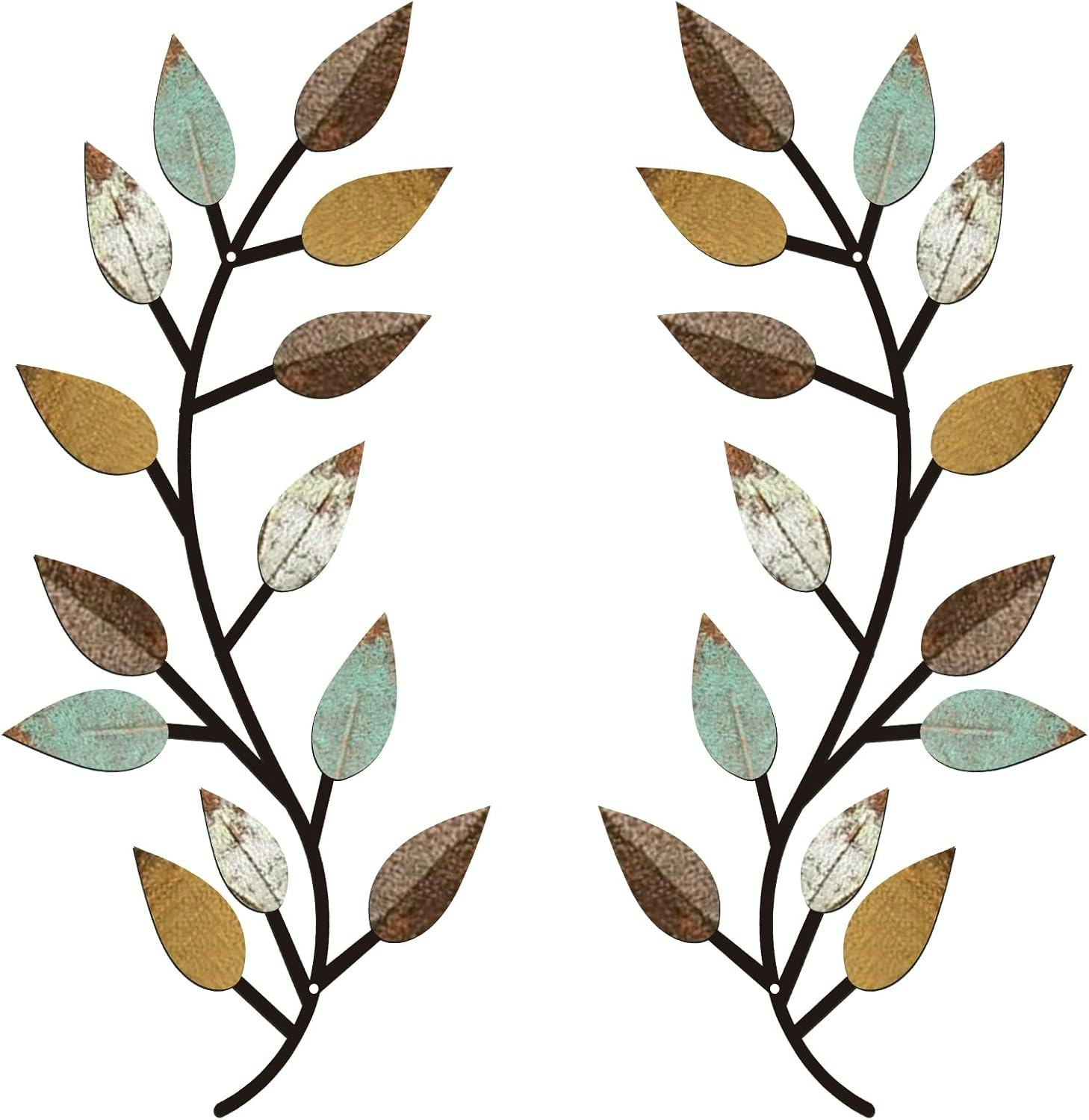 Zhengmy 2 Pieces Metal Tree Leaf Wall Decor