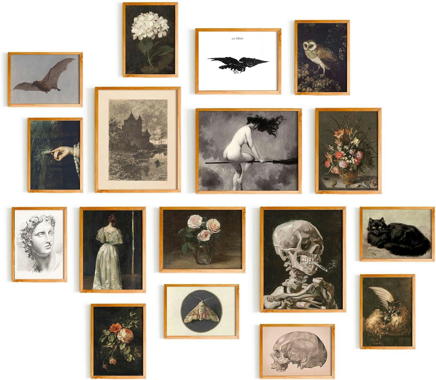This set of 17 wall art pieces features a mix of dark academia and gothic-inspired prints, designed to create a moody and captivating atmosphere. With a blend of mysterious allure and intellectual elegance, these prints are perfect for those looking to bring a touch of dark romance to their home decor.