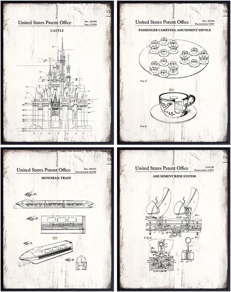 This set of four unframed Disney patent art prints offers a unique and nostalgic touch to your decor, showcasing iconic designs with a vintage patent-style presentation. They’re a great choice for fans of Disney and those who appreciate playful, historical art, these prints add character to your room.