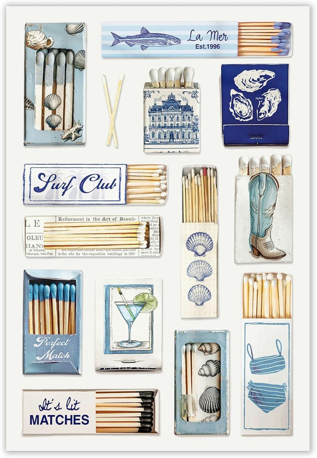 Featuring a unique mix of matchbox and coastal elements, this 12x16-inch print showcases bright beach-themed visuals that energize any space. The combination of seashells and ocean colors makes it an ideal piece for those who want to bring a touch of the shore into their home. Ideal for display with or without a frame, this poster brings life and character to any wall.