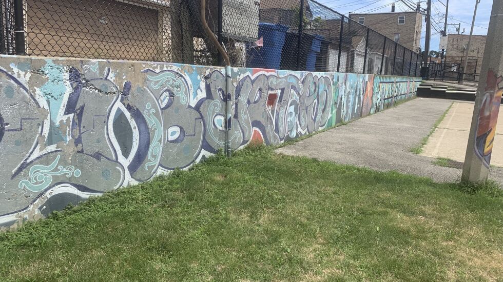 As part of that effort, about a dozen high school students helped lead artist Jesus “Chucho” Rodriguez, who “taught the teens the history and tradition of mural-making and graffiti art, and the students were encouraged to incorporate what they learned into the Barrett Park mural,” according to the Chicago Park District.
