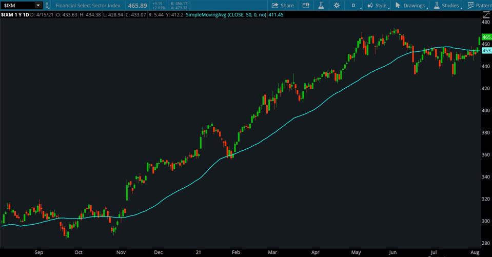 The 10-year Treasury yield (TNX) gained Friday on the news that 943,000 jobs were added in July and the employment level fell to 5.4%, its lowest level since the pandemic shuttered swaths of businesses in March 2020. The 10-year yield jumped to finish at 1.29%. Keep an eye on 1.3% to see if it can top that, because some analysts see 1.3% as a key technical resistance level.