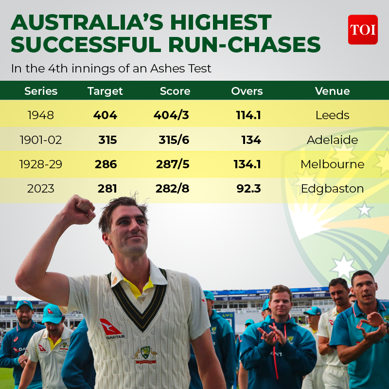 Australia chased down the target of 281, with Cummins unbeaten on 44 and Lyon on 16. They had managed to pull off the highest successful run chase in the fourth innings of an Ashes Test in 75 years.