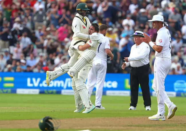 <p>Cummins, who finished on 44 not out, hit the winning boundary when he edged Ollie Robinson to third man where a diving Harry Brook knocked the ball over the rope.<br /></p>Getty Images