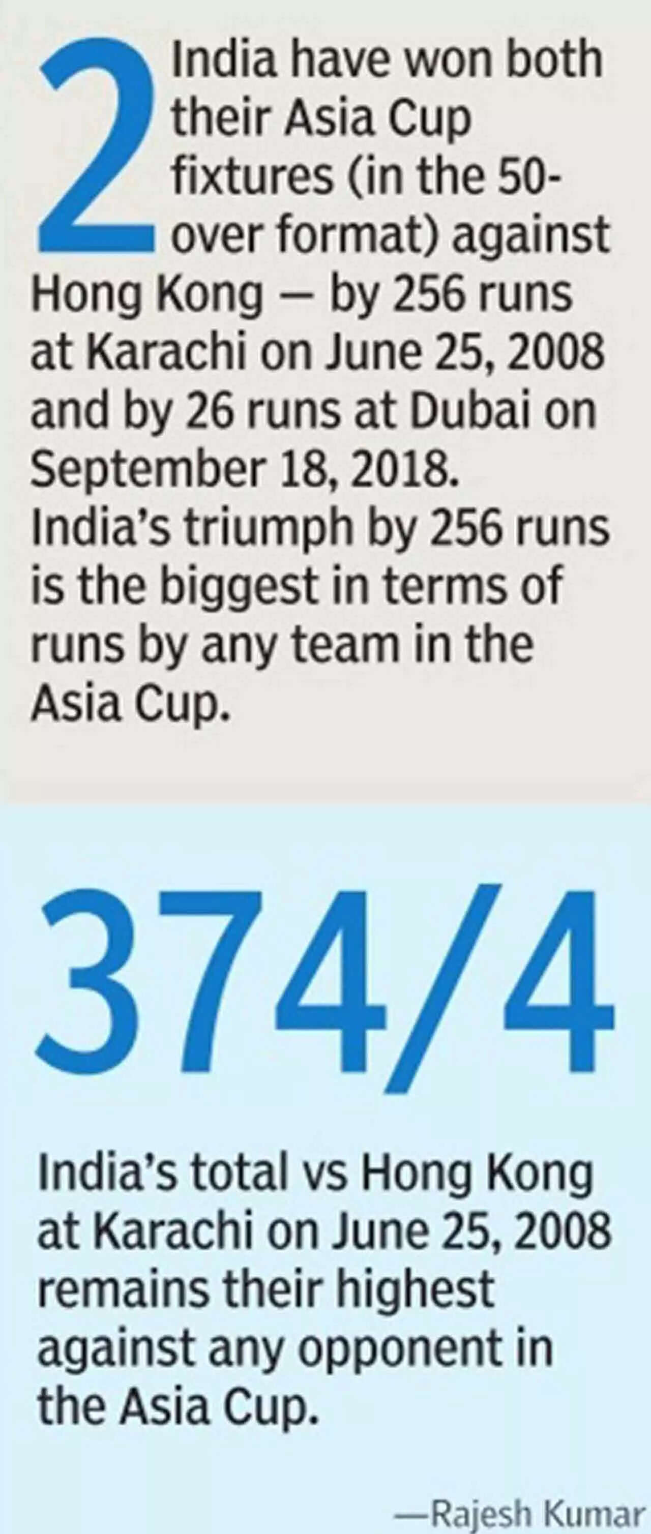 Hong Kong had given India a scare in the previous Asia Cup, which was played in the ODI format, here in 2018. They fell 26 short in their chase of 285 then.