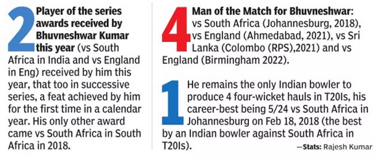 Now he is back in Dubai again, this time just as a T20 specialist. He may have come here on the back of a few mesmerizing spells of new ball bowling but Bhuvneshwar would know that every series and big match will count when the selectors and team management sit down to pick the first XV for the T20 World Cup in Australia in October-November.