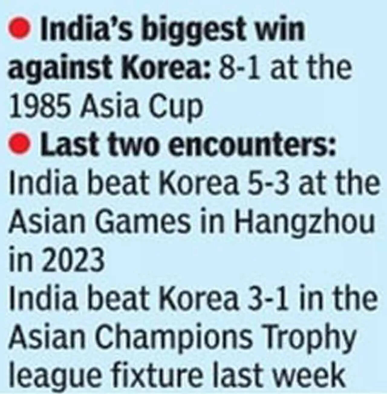 Although India will have the upper hand, Korea is no easy meat. Their forward line is quick on the counter, and they have thrived in the form of their drag flick ace Jihun Yang in penalty corners. With seven goals, Yang is currently the leading goal-scorer of the competition, and he could well prove a handful for goalkeepers Krishan Pathak and Suraj Karkera, who guard the posts equally during a match.