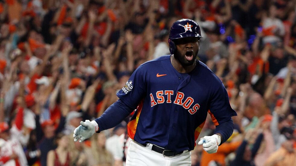 Astros rookie shortstop Jeremy Peña was the World Series MVP after getting another key hit, a single to set up Alvarez’s drive.