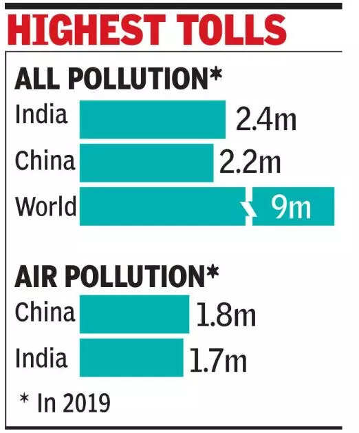 NEW DELHI: Pollution led to over 2.3 million (23 lakh) premature deaths in India in 2019, accounting for over a fourth of the nine million such fatalities worldwide, an update to The Lancet Commission on Pollution and Health published in The Lancet Planetary Health said. Economic losses from modern forms of pollution — including ambient air and toxic chemical —now amount to at least 1% of the country’s GDP, it added