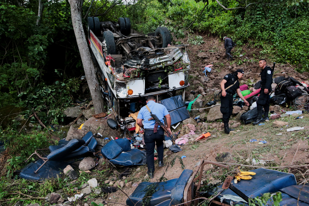 The bus, which was traveling along the Pan-American highway in Nicaragua's Esteli province, was speeding and collided with two vehicles before falling into the ravine Wednesday evening, the police said in a statement.