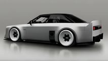 The body is constructed from lightweight glass fiber–reinforced plastic rather than traditional sheet metal or carbon fiber. The rear features a large diffuser and spoiler to enhance aerodynamics, while the roof is sourced from an actual Audi 80.