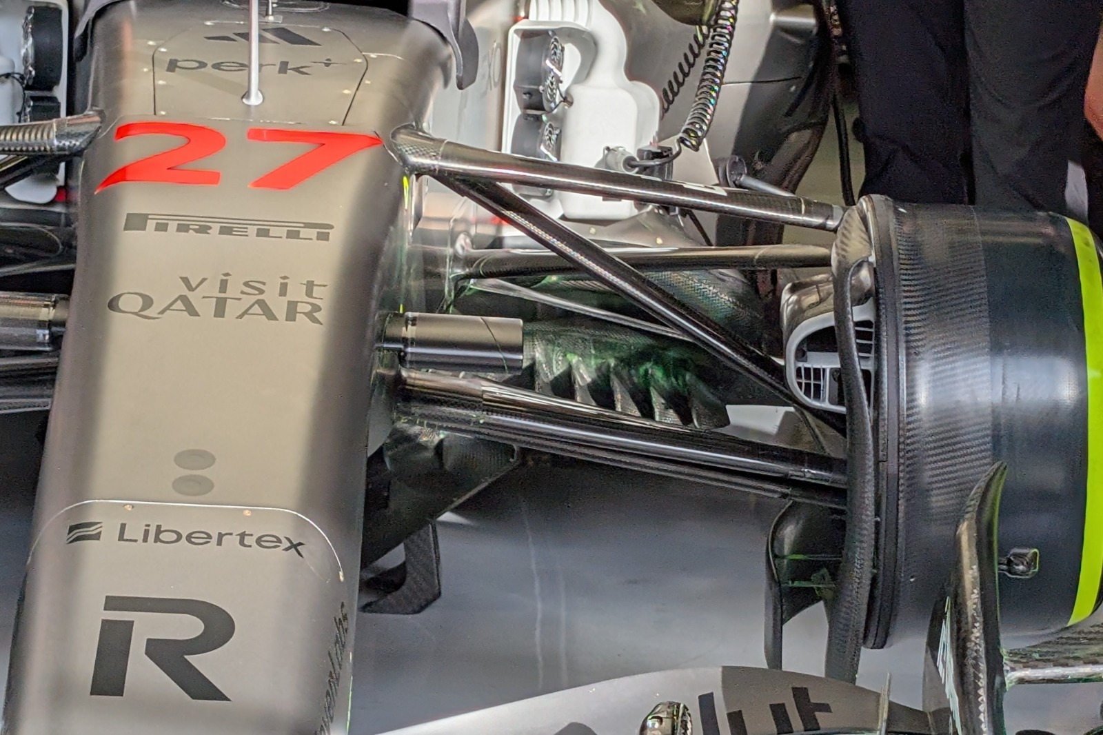 There are further new elements to the Audi around the front wing. The team has opted for the twin active-aero actuators, rather than the central actuator under the nose. This allows the team to lower the nose without creating too much blockage from the actuator housing.
