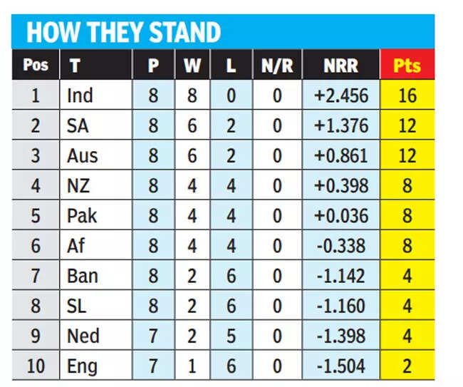 They next face South Africa in Ahmedabad on Friday but their qualification for the knockouts depends on them winning and other results going their way as their net run rate (NRR) is inferior to those still in fray.