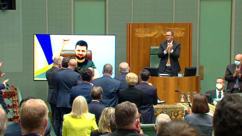 Australian politicians gave Mr Zelenskyy a standing ovation after his address to the parliament.
