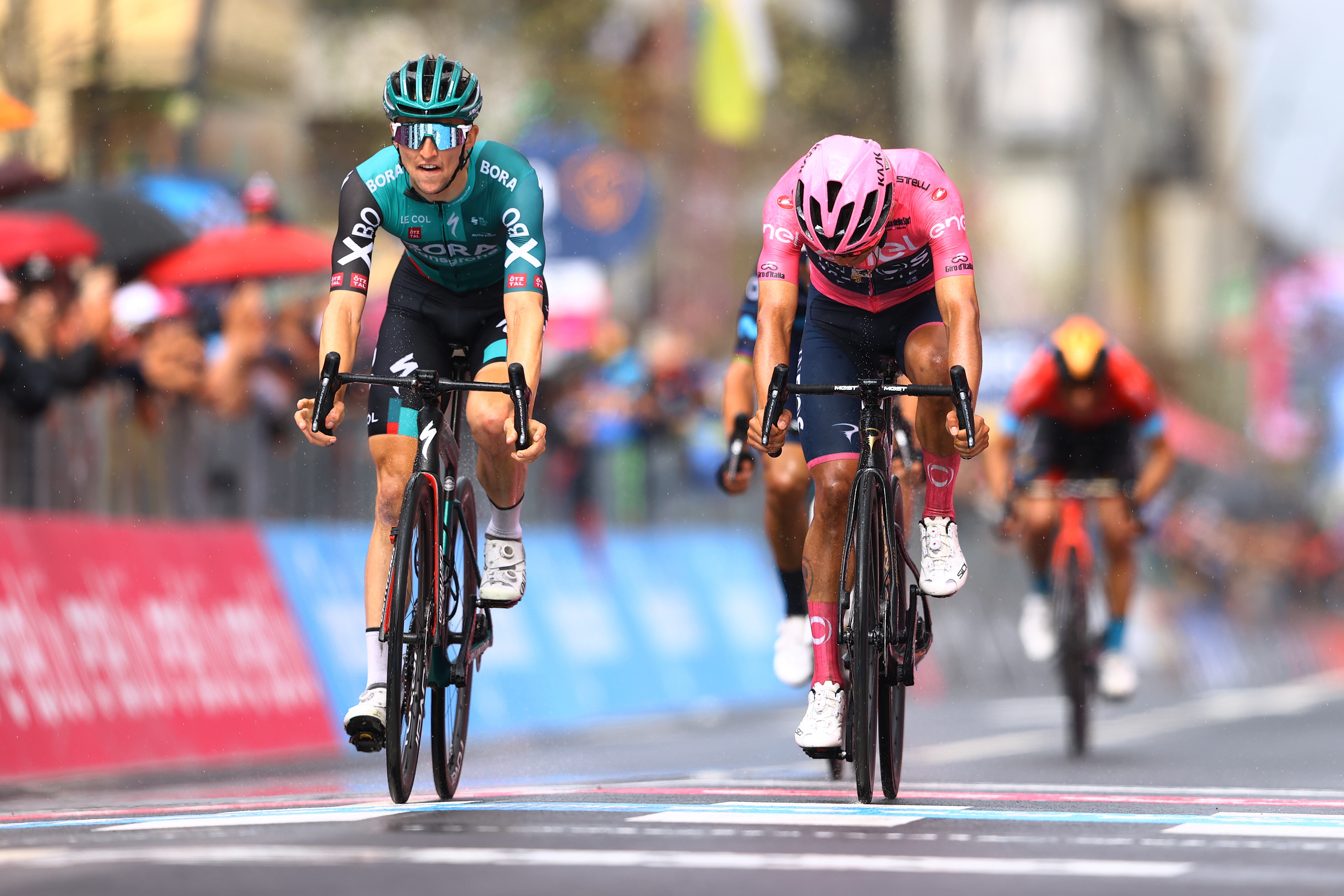 The key fight was for third place and the final bonus seconds between the overall favourites, with Australia's Hindley edging out Carapaz by a matter of centimetres, and Mikel Landa.
