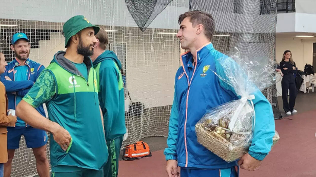 Masood and his counterpart Pat Cummins could be seen sharing the smiles and carrying goody baskets.